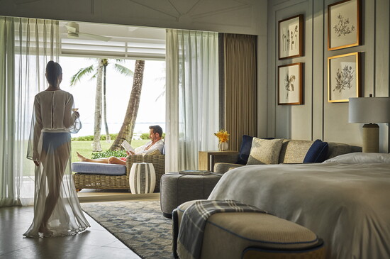 The rooms and suites reflect the hues of the island itself, soft coral, sun-washed sand, and pale aqua. The recently refreshed Crescent Wing features sweeping ocean views from private terraces, while the Hartford Wing offers a serene garden escape centered around a fountain courtyard. For the ultimate stay, the resort’s beachfront villas and bungalows feature private plunge pools and pathways that lead directly to the sand. Hammocks line the lawns, swaying gently in the breeze and inviting guests to linger between sea and sky.