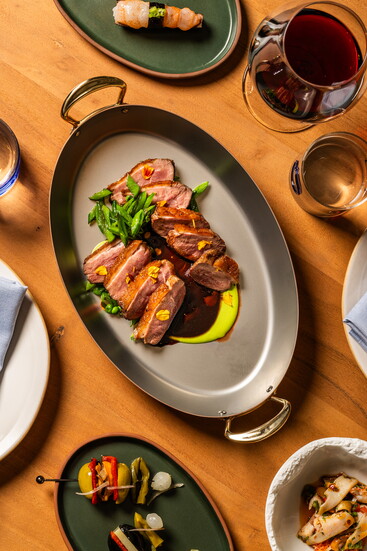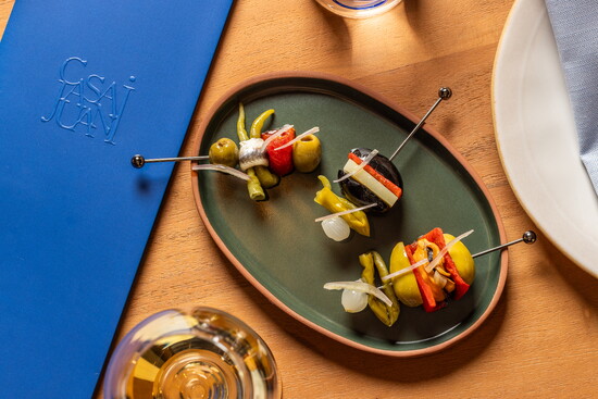 Just a few nights after it opened in late February, Casa Juani is buzzing with lively chatter from patrons, their cutlery clinking across artisanal plateware displaying collections of vibrant tapas dishes. Spanish wines and creative cocktails in delicate coupe glasses frame the plates resting on light oak tables. Friends and families huddle in camel-hued booths, reaching to sample the feast in front of them. The vibe is decidedly Boulder—hip yet relaxed—but also completely distinctive, a testament to its owners.