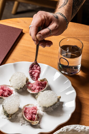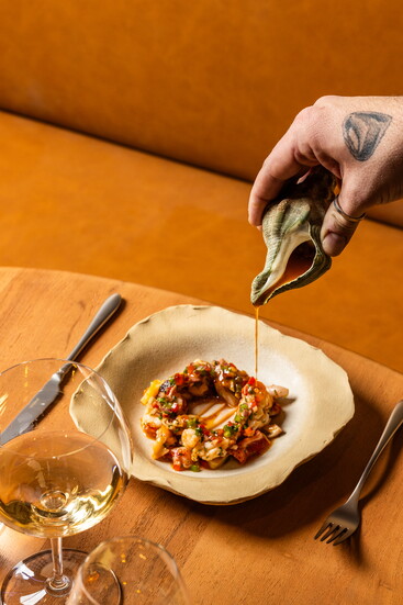 Casa Juani seafood, vegetables and meats are sourced from the East and West Coasts, Spain and local farms, including Toohey & Sons and Esoterra Culinary Garden. Sea urchins are overnighted from Santa Barbara, California, where divers caught them the previous day. Every ingredient in the kitchen begins whole, whether it’s spices, ribeye on the bone, or a freshly harvested tomato. “There’s no shortcut to delicious cooking,” Jeun says. “It’s about developing flavors. Food tastes better when you can source it properly.”