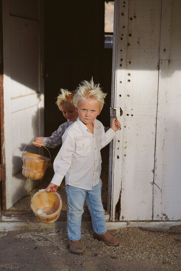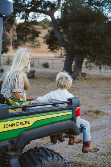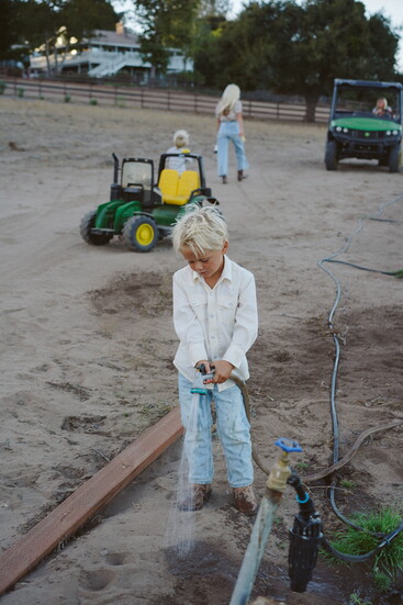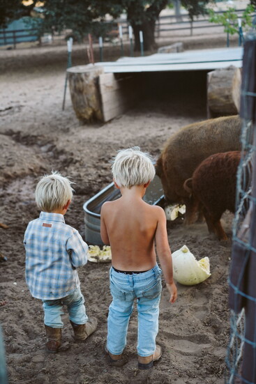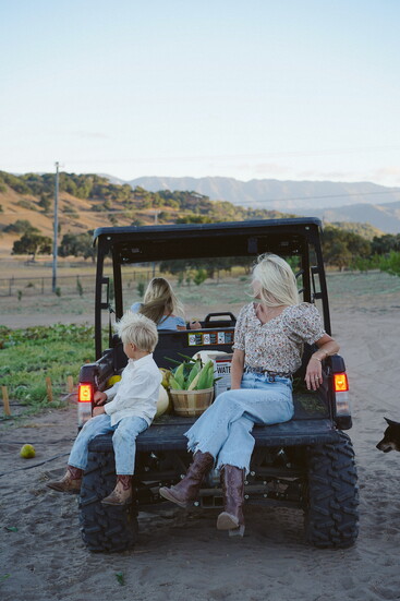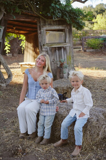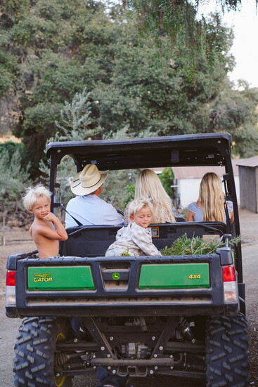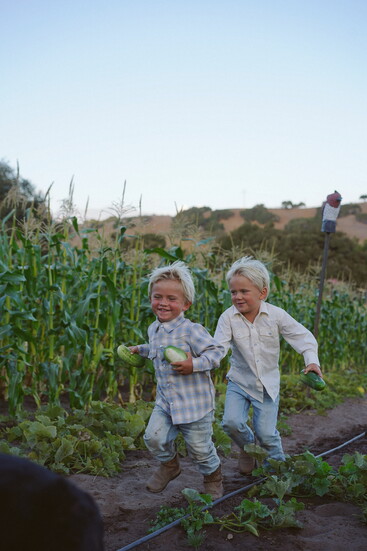 This slower-paced life suits everyone. Her two boys can rope a cow, shut a fence, and feed the farm animals. The family regularly eats the chicken eggs, forages for snacks in the organic garden, and generally lives off the land. Everyone cherishes time spent living simply, often longing for the open spaces of the farm when they’re in Santa Barbara. Everyone is dirty, exhausted, and has an endless to-do list, but happy. “I can’t believe I get to raise my kids this way,” she says.