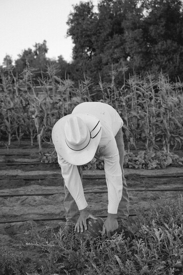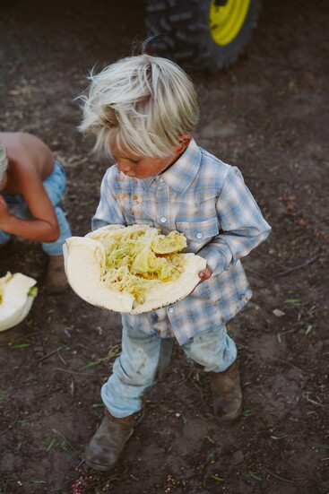 Still, ranch life isn’t for the faint of heart. There are fences to be mended, crops to be tilled, and animals to feed. Full Moon Farms currently has pigs, horses, donkeys, chickens, tortoises, dogs, cows, llamas, alpaca, goats, and sheep. Everything grown on the farm–from the squash to the watermelon–goes back into it, either to feed the animals or fuel the family.