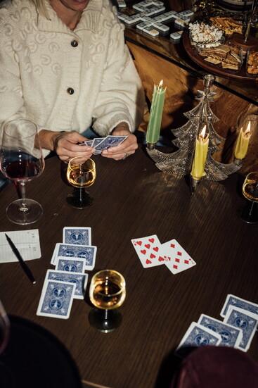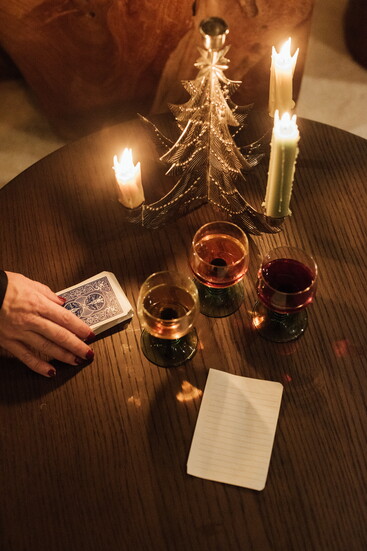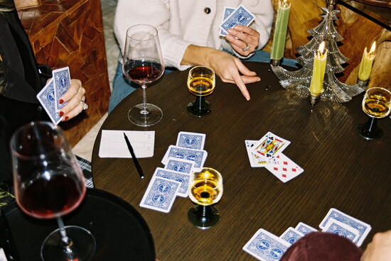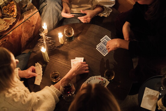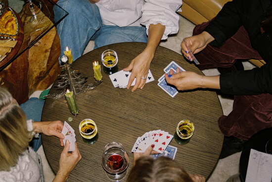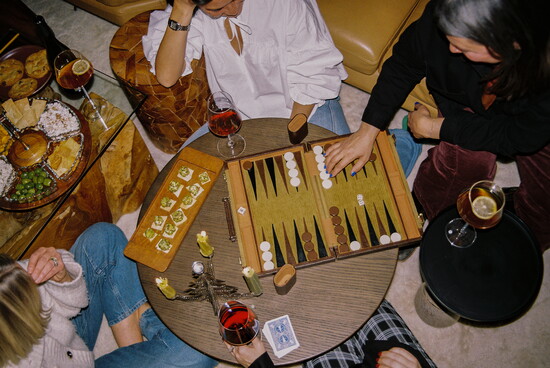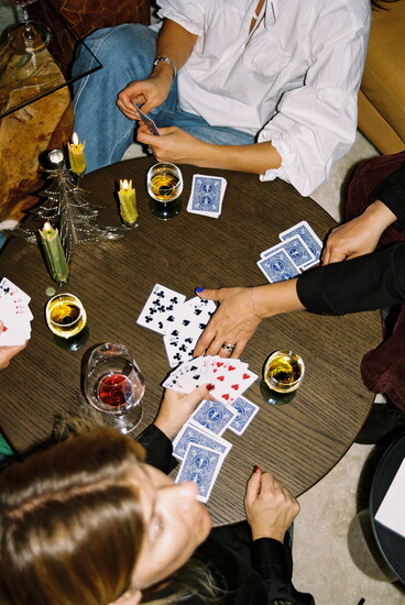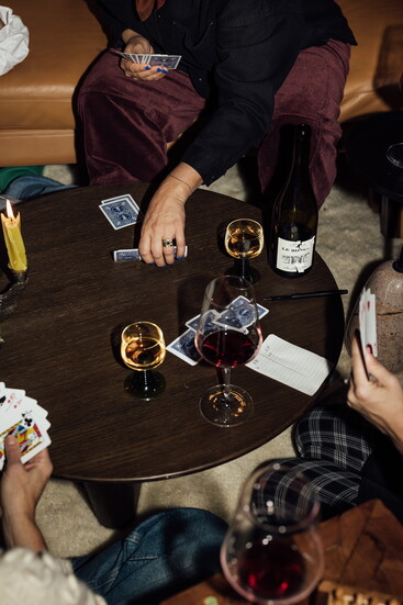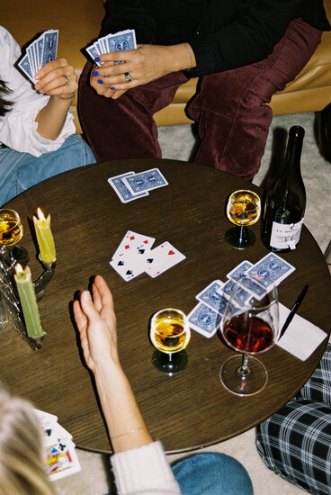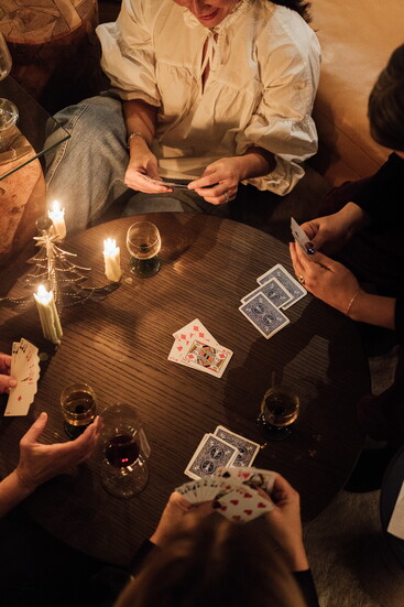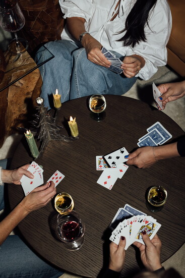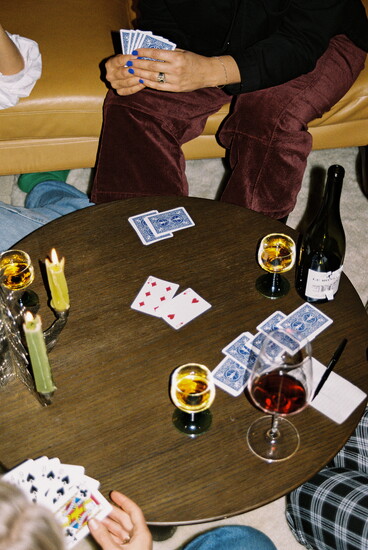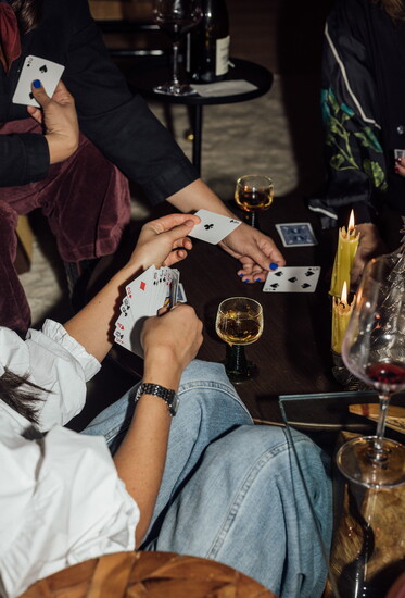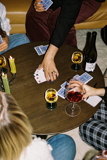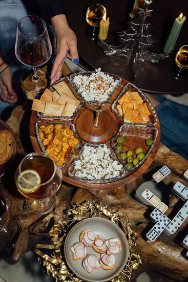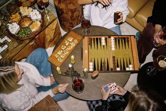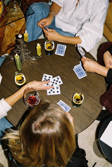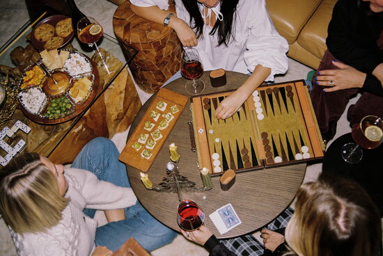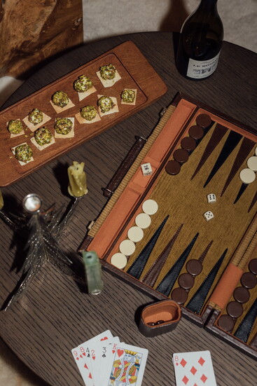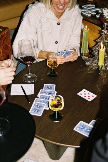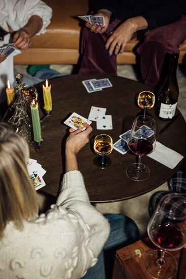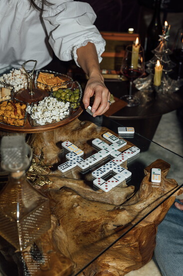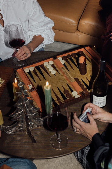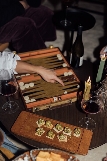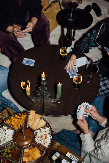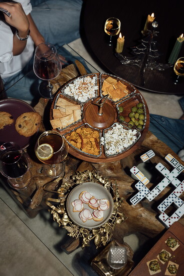 Keep it elevated, not overcomplicated. Rotate houses to share the load. Lock in a recurring weeknight, so game night becomes a ritual. Lean on a luxe-but-simple spread: a charcuterie board, some sweet treats, a round of cocktails or mocktails poured into beautiful glassware. Fresh flowers or a flicker of candlelight instantly sets the mood.