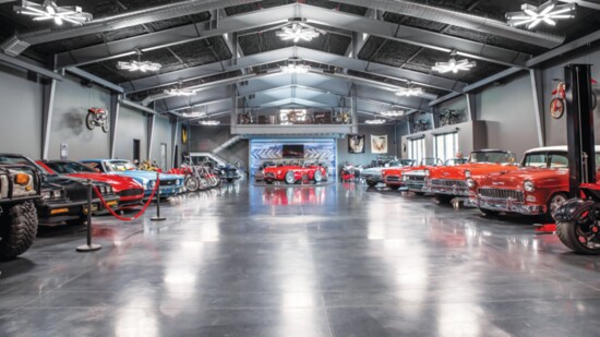 Any onlooker would find Lovell's garage surreal. His custom-built showroom is a guy’s dreamland, and it neighbors his massive workshop.