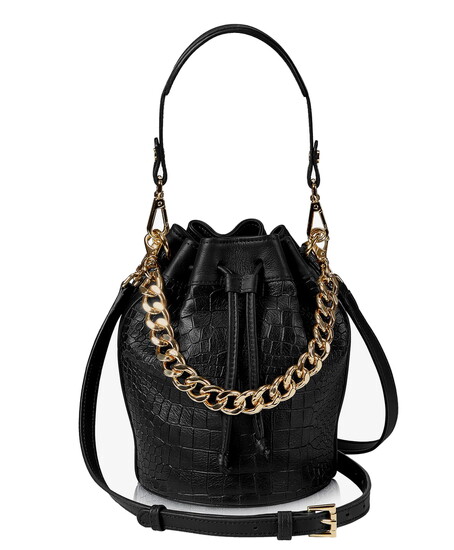 - Black Gigi New York Bucket Bag: This versatile piece comes with a detachable chain strap, crossbody strap, and top handle with a cinch top drawstring closure. | Monkee’s of Dripping Springs, $425