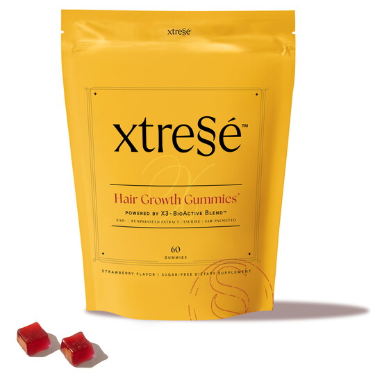 10. Xtressé Hair Growth Gummies: Ideal for beauty and wellness enthusiasts, this cutting-edge, biotin-free supplement supports fuller, stronger hair from within. Powered by the X3-BioActive™ blend with NAD⁺, saw palmetto, and adaptogens, Xtressé promotes healthy hair growth without hormones or gluten. | Saxon MD, $78 (30-day supply)