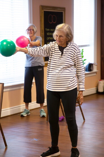 Over the summer, there was bocce ball outside, while inside, classes in tai chi and ballroom dancing were taking place. There are several classes designed to promote strength, balance, and flexibility. “We know that one in four seniors has falls that lead to an ER visit, so by helping them learn to strengthen those core muscles and other muscles in their bodies and get their stances correct, it will help reduce those visits.” She has seen people start out using canes and in wheelchairs, and after taking these classes, no longer need them.