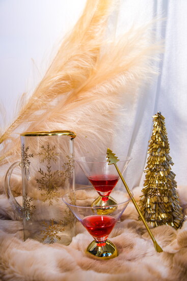 Holiday Glass Set with Pitcher, Cocktail Glasses, and Drink Stirrer