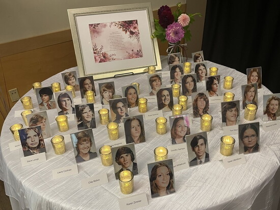 The MIHS Class of 75 came together in August 2025 to celebrate their 50-year reunion. The week of activities started with a friendly golf gathering followed by a highly competitive pickleball tournament. On Friday, over sixty alums got a tour of the High School. Some lamented the loss of the iconic Mushroom which doubled as a cafeteria and performing arts center. And others asked, “where did the student lockers go”?