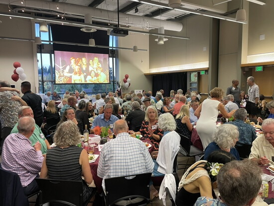 The alumni gathering on Friday night was hosted at the VFW Hall where long lost classmates reunited and mostly true memories of days gone by were recounted. Saturday night, the Gala Dinner was at the Mercer Island Community Center. A video montage created by grads Tony Crosetto and Todd Shaw capped the evening with photos and music from the 70’s. The memory table of grads that have passed away was moving and a table with MIHS memorabilia was a big hit. Renowned concert violinist, Robin Lortenz, Class of 75, did a reprise of “Tradition” from the Fiddler on the Roof which she starred in during her senior year at MIHS. Jeff Condiotty emceed a trivia quiz reminding everyone that, among other things, Dicks hamburgers were 19 cents in 1975.