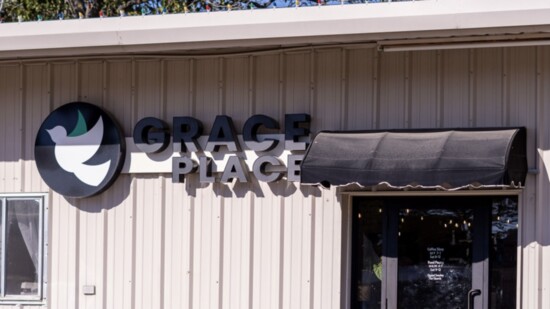 How does the coffee shop at Grace Place contribute to the food pantry’s mission?