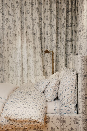 Given Greenwich’s strong residential character, Diamond wanted to create something extra special for the home collection. Toward the back of the store, shoppers will discover an upholstered bed dressed in a custom recolored version of Hill House’s Vine Stripe print. Only the second store in the brand’s fleet to feature a bed, following Charleston. It’s a discovery moment that feels intimate and joyful. “It genuinely makes me so happy every time I see it,” Diamond says.