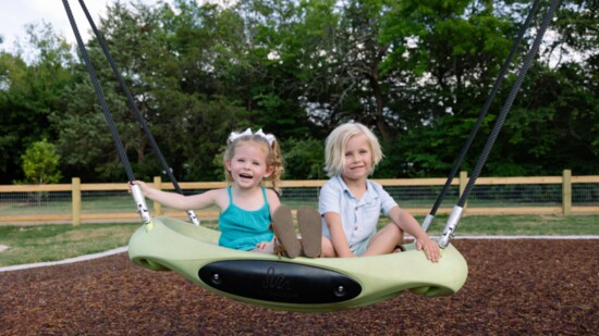 Utilizing a five-theme planning process, the Gulley Park renovations reflect Fayetteville’s rich history. Long ago, the area hosted the Butterfield Coach Overland Trail, a mail route through the southern United States. Artist Eugene Sargent custom-built a stagecoach and cows that adorn the new playground and serve as a climbing and imagination spot.