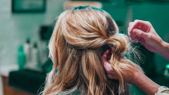 For parties and special events, Mary recommends balancing statement accessories with understated hair. “Big earrings go with soft waves tucked behind the ear.” Conversely, if you’re keeping jewelry minimal, play up the hair. “Bigger curls and opposite-direction waves add movement and make the look dynamic,” she explains. For added volume and hold, she suggests Davines Dry Texturizer Finishing Spray. “It gives great texture without feeling crunchy, and it smells like candy!”