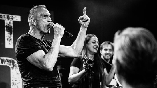 Occasionally. It's funny. At first she was really worried for me, because when I was first learning the impression, there was a lot of trial and error. Let's put it that way. I really had to work at this, really, honestly harder than... I spent my whole adult life doing vocal impressions on one level or another, but this was by far the hardest I've ever worked. I think a lot of it was just to distract myself from turning 60, I really do, but I really fell into a rabbit hole with it. And that got annoying because I was screaming Bruce in the house for months, and it didn't sound very good at first either. I was really learning to do it, so it was really annoying and she was really worried I'd never believe in myself, and trying to break to me, "Maybe you shouldn't do this kind of thing." And I blew my voice out too. I was practicing so hard, and Bruce has such a heavy rasp. It was a journey, and then my wife in her 20s had spent a lot of time around the music business and didn't really love it, so she was having PTSD flashes. She couldn't believe her husband was entering the music business somehow, because she had never really loved it, but then all's well that ends well. She sees how much joy it brings me and how much fun we're having and how much money we're raising, and so she's really on board now.