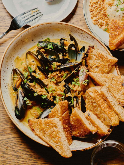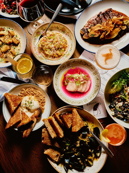 The beverage menu follows suit with signature cocktails crafted with housemade juices, syrups, and tinctures. Two standouts are the clarified milk punches, designed to bring nostalgic flavors out in an elevated way. The Bamm Bamm is reminiscent of Fruity Pebbles "cereal milk" while the Orange Creamsicle is a sippable ode to the tasty frozen treat. Two spirit-free drinks round out the menu, both intentionally built as memorable drinks sans-alcohol, and an extensive wine list is also available.