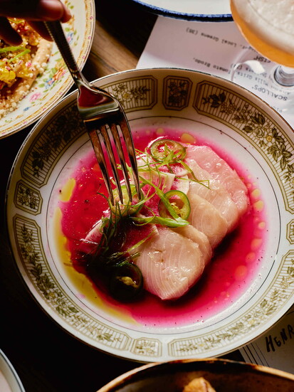 The menu is designed to be shareable with small plates and few larger options. Early fan favorites include the Hamachi with sesame, preserved blackberry ponzu, radish, and jalapeño and the carrots with whipped ricotta, caramelized honey, dukkah, and espelette. Some guests are even calling the Half Green Circle Chicken the "best chicken they've ever had."