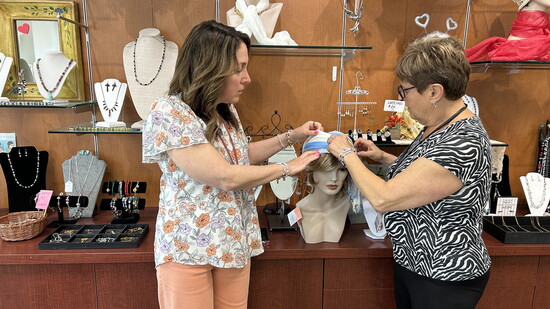 “We offer a certified fitter to help with wigs, breast prostheses, and lymphedema garments,” she says. “There’s also a full range of image recovery items—skin care products, non-metallic deodorants, cosmetics, hair alternatives like wigs, hats, scarves, swimsuits, lingerie for women who’ve had breast surgery, jewelry, and inspirational gifts.”