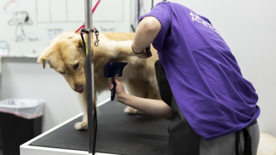Services are recorded by a video surveillance system and iPads are utilized next to each tub and in the grooming room to note pertinent observations about the dog’s skin, coat, ears, nails and teeth. This information is later shared in a report card with the pet parent.