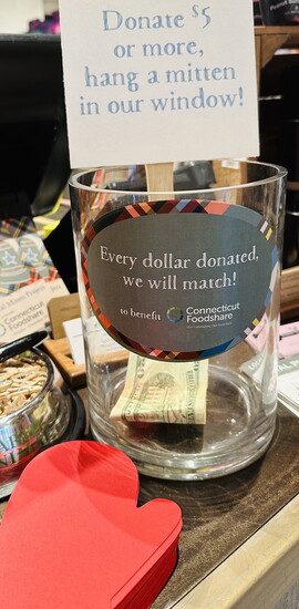 percent of the proceeds from the event go towards the Project (don't miss the pies and homemade ice cream from Wakeman Town Farm, 100 percent of the proceeds from each purchase support CT Foodshare); and the Pin-Up Fundraiser, where for every $5 or more donated, the Earth Animal team hangs a paper mitten in the window. The decor has become an iconic symbol of this cornerstone annual fundraiser.