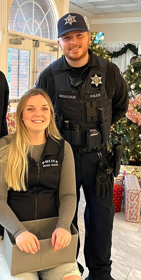 Boise Police Department Communications Manager Haley Williams explains, “The Victim Witness Coordinators work with families known to the department who have gone through something during the previous year and are in need of or deserving of support. They get wish lists from the families, buy presents, wrap them, and then an officer dressed as Santa gives them to the kids and families.”