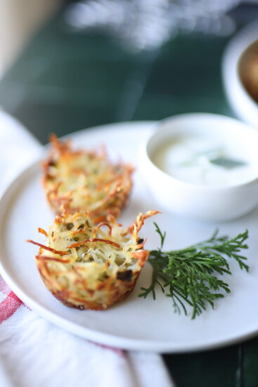 Spray muffin tins with non-stick cooking spray. Combine all ingredients in a bowl and stir. Evenly add mixture to each muffin tin and lightly press down. Bake at 400 degrees for 45 minutes. These can be made in advance and reheated for convenience.
