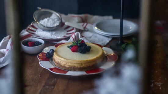 Bake for 30 minutes at 325° F. Reduce temperature to 250° F and continue cooking for 45 minutes more. Once done, turn oven off and keep cheesecake inside for another 30 minutes. Bring cheesecake to room temperature on the counter (3-4 hours) before covering with plastic wrap and place in the fridge.
