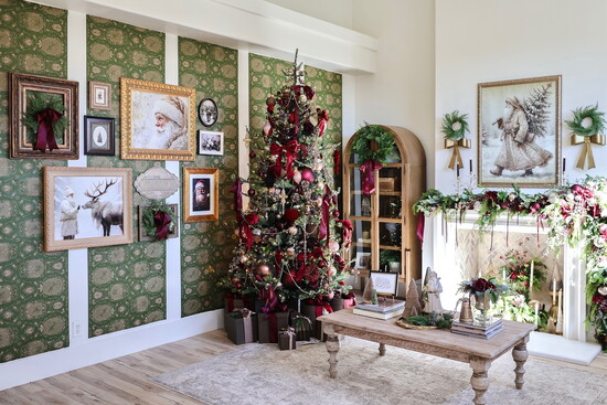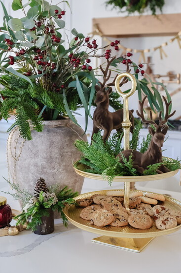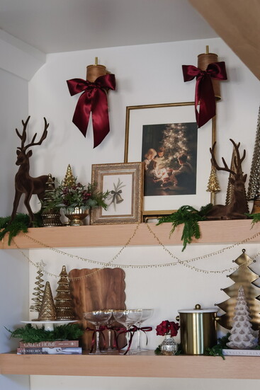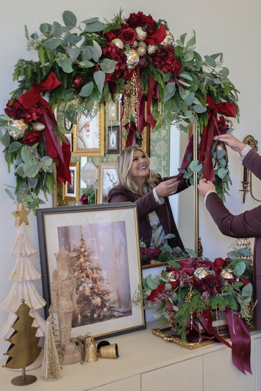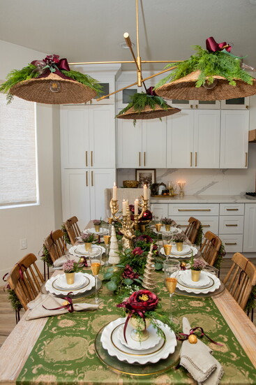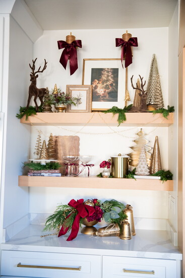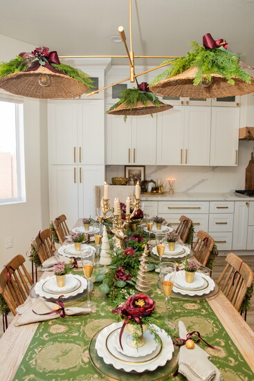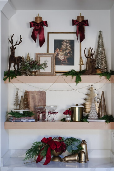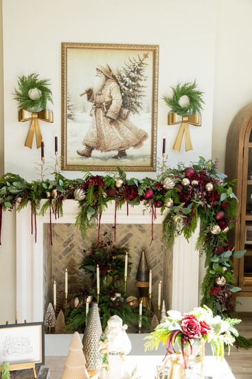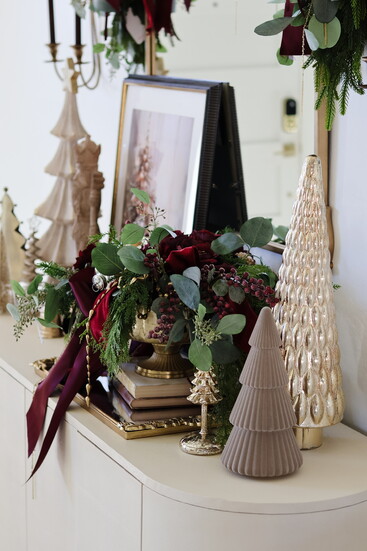 For those who love neutrals, she recommends soft layers of tone and texture. “Start with sage greens, soft wood tones, and layer in metallics for shimmer. Greenery is what makes any space feel festive.”