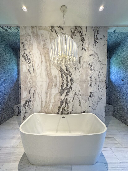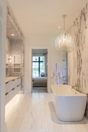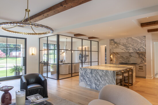 Modern. Elegant. Sophisticated. From concept to completion no detail was spared, and it shows throughout the entire home. With floor to ceiling marble, large windows, and unique lighting and furniture, the Tomaltys built a masterpiece tucked away in Huntsville's Jones Valley. With a clear vision of using organic materials mixed with warm and varying textures; clean lines with minimal visual “noise”, Ashley Tomalty chose limestone, marble, solid oak flooring, vintage beams, and unlacquered brass to create the feel of her new home. She drew inspiration from architects including McAlpine House, Amber Interiors, and Jeffrey Dungan.