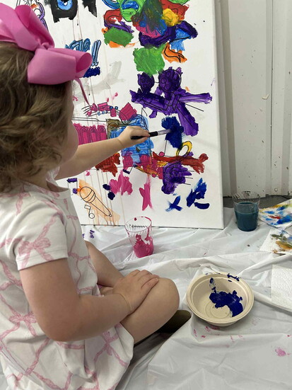 Fast forward a couple of months, and Maizy was asked to be part of a paint party with local artist, Nancy Finnegan, at which Wish Kids got to paint something that would be auctioned off at the Wish Night Gala here in Huntsville. Not only was she asked to come in and help paint, but we were also invited to attend the Wish Night Gala where this painting would be auctioned off to help raise money for Make-A-Wish Alabama. Nancy has two Wish Kids herself, so the cause is dear to her heart. Donating a painting to be auctioned is one of the ways that she can give back to the cause that impacted her children's lives so greatly.