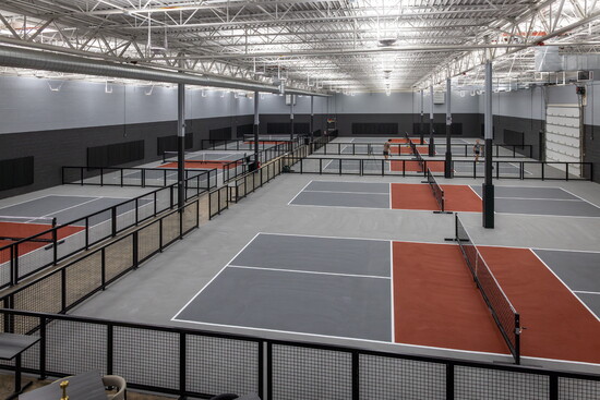 The building renovation and construction was completed by the award-winning Fred Olivieri Construction along with MRO Built. The club features nine professional-grade, climate-controlled courts built by the Vasco Group, 22-foot-high ceilings, protective wall padding, and state-of-the-art indirect lighting.