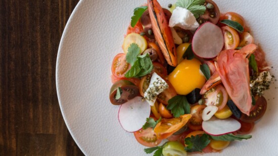 It is rare to see an egg on a tomato salad, but chef Avnaim says the sous vide egg adds a creaminess to the appetizer.