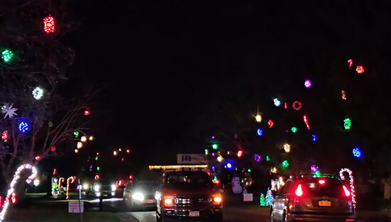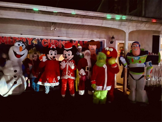 While it’s a drive-thru, visitors can park and get out to take pictures with Santa and the characters. “The most shocking part is when you realize the kids coming here are now bringing their kids. It’s just joyous seeing the kids and the fun all out there.” It’s also fun for the participating friends and neighbors, who often celebrate together after the light show is over with a shared meal.