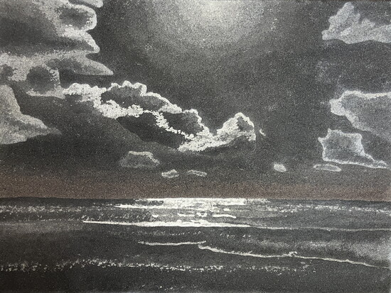 That curiosity followed her to Colorado, where she moved with her family to the Woodland Park area and then to Colorado Springs. Now, surrounded by the dramatic landscapes and ever-changing skies of the Pikes Peak region, inspiration is everywhere. Gray continues to snap photos on her road trips all over—cloud formations, mountain horizons, or even ocean views like those she captured on her last trip to Galveston, Texas—and later revisits these moments in her paintings.