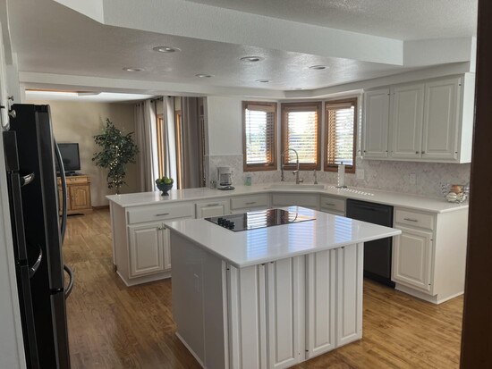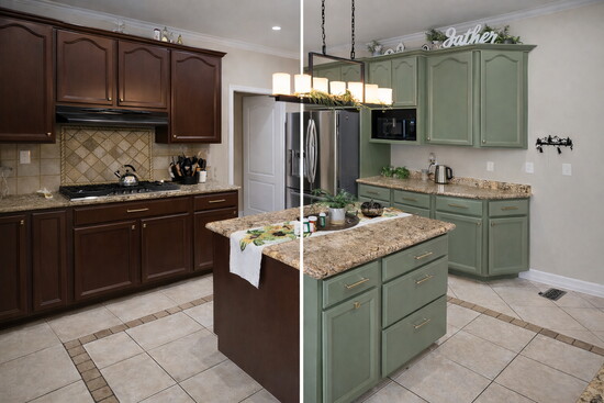 The work was done in a matter of days by Painted Kitchen Kabinets, a local business specializing in cabinet and interior door refinishing.