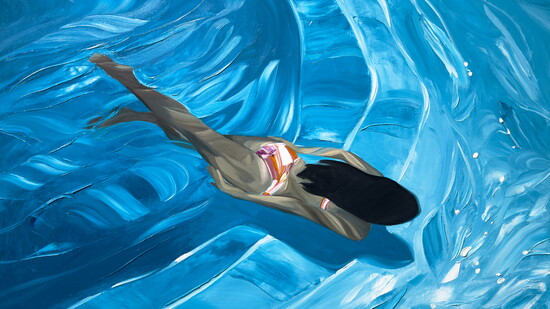 “It can be conceptual. It can be nostalgic for people if they recognize that feeling when you’re swimming in water, and they can relate to it,” he says. “The cars are a whole other thing; it has a lot to do with man vs. nature—but it could also be as humorous as just giving a car a wash.”