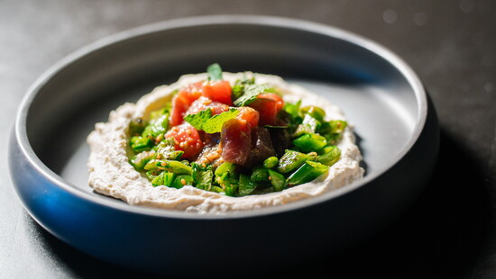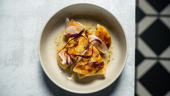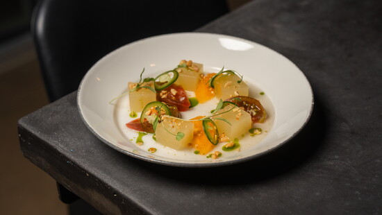 Found in a basement in RiNo, BearLeek hosts an intimate dining room and bar area. Walking down the stairs, you walk into an open concept and welcoming staff, immediately feeling at home and ready to try anything the team has on the menu that evening. Originally conceived by Harrison Porter, the Executive Chef and Co-owner, the team was quickly expanded to include Rema Maaliki, Chef de Cuisine and Co-Owner, Carlos Hugo Meza, Beverage Director and Co-Owner, and Tara Marcellus, General Manager. For all owners, BearLeek is their first independent venture, but supported by their expansive experience in the Denver and global hospitality industry. Alumni of restaurants like Mercantile Dining and Provision, Brasserie Brixton, Wolf’s Tailor, Quality Italian, and the now-closed Fruition, the team is constantly blending their experience. When visiting the restaurant, you feel this blend, from the Garden Grove cocktail and seasonal ButterBear, to the Tomato and Melon in Bear Cham, and handmade Pierogies, you can see and taste their wide berth experience mixing into something that, put simply, works.