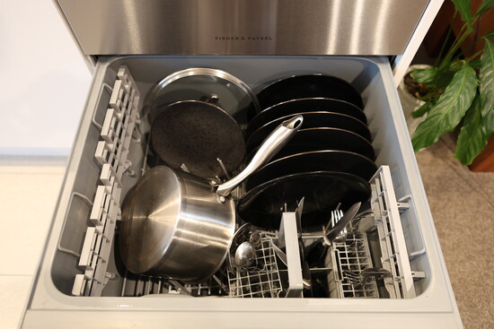 Dishwashers can offer significant energy savings. New models detect load dirtiness and adjust cycle time and water usage. The Fisher & Paykel drawer dishwasher provides a half-load option, running drawers independently.
