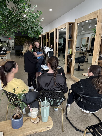 Then there are lessons that go beyond hair. Her growing team of twelve also learns consultation skills, pricing, retail sales, client retention, social media content, branding, and time management. “The goal,” said Luana, “is to build well-rounded stylists who are confident behind the chair and successful long-term.”