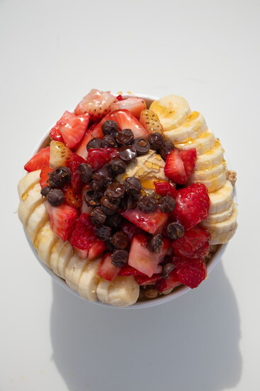 · Nutty Professor – Organic açaí bowl topped with granola, nuts, banana, strawberry, blueberry and raw honey
