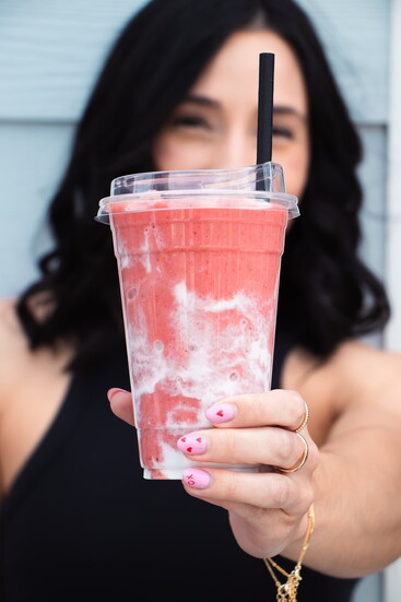 · Pink Panther – Organic pitaya, pineapple, mango, coconut cream, flaxseed, organic coconut water (vegan)