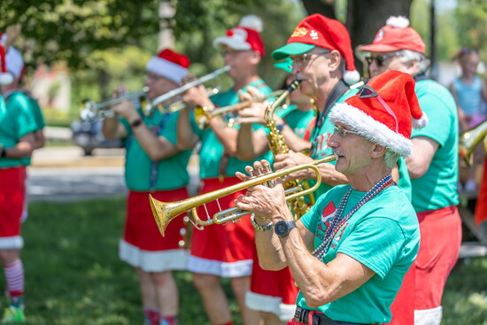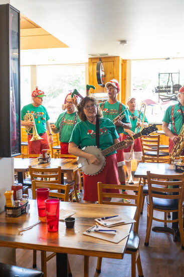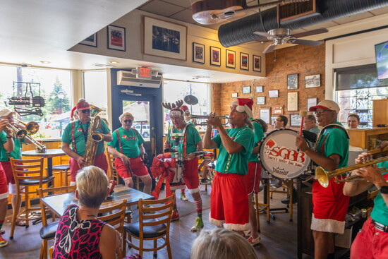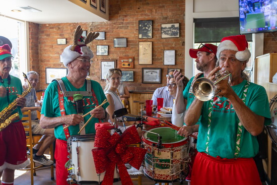 What began as a small group of holiday-loving musicians has grown into a 40-plus-member sleigh ride of Christmas joy. With a roster that includes trumpets, trombones, sousaphones, saxophones, banjos, violins, guitars — and even a keytar — the band’s energy is infectious.
