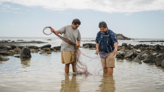 “The net is like our escape and quiet time for us,” says Apo. Born and raised in Kailua-Kona, Apo has seen the town evolve into a bustling city on the Big Island’s west side.