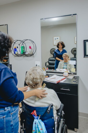 Keystone Place at Wooster Heights spans four floors with every amenity imaginable. There’s a library, fitness center, movie theater, multiple activity rooms, pub, outdoor spaces, and a full-service salon run by a licensed cosmetologist, Marylou Desiervi.