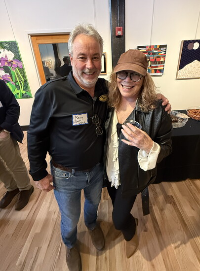 Renowned artist Robert Tino and his wife, Mary John Tino, donated artwork for the silent auction. L-R: Robert Tino, Senior Writer for Knoxville City Lifestyle, Patti Broyles, and Mary John Tino.