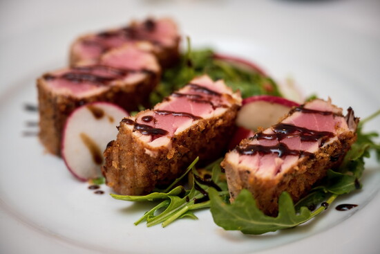 And those plates? They’re the kind of dishes you remember long after the last bite. Think house-made tagliatelle al tartufo with seasonal shaved truffles and Parmigiano-Reggiano, risotto with meltingly tender osso buco, or figs stuffed with gorgonzola and walnuts in the fall. There’s always something new to tempt you — squash-filled ravioli, braised wild boar with pappardelle, or delicate stuffed quail — alongside year-round favorites like Pan-Seared Tuna with cherry tomatoes, roasted corn, and arugula.
