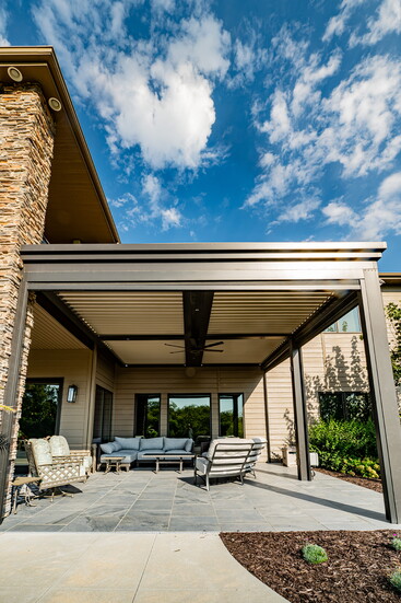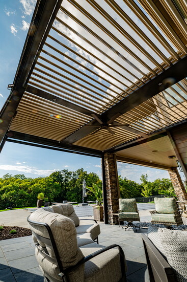 Outdoor Odyssey’s signature offering is its custom-designed aluminum pergolas, equipped with automated louvers that can be controlled remotely or through a mobile app. On bright days, homeowners can adjust the louvers to filter sunlight. When weather shifts, the system closes to create a watertight seal, directing rain through an integrated gutter system. The result is an outdoor space that adapts in real time - comfortable, functional, and usable in changing conditions.