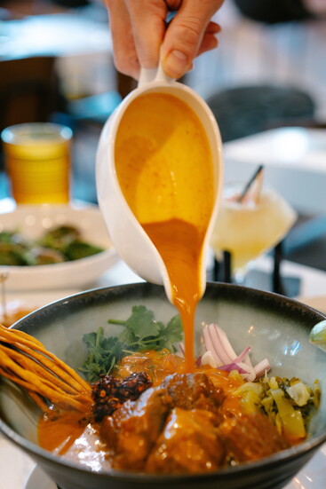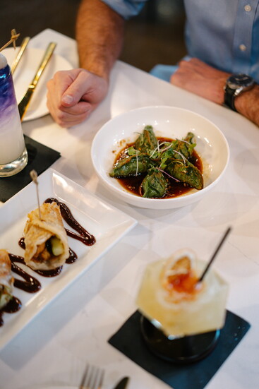 Since opening in November 2024, Sakhuu Thai has quickly become a local gem for authentic and fresh cuisine in the heart of Lakeside. With a buzzy atmosphere that feels like you’ve stepped into a chic city hideaway, it welcomes couples looking for a night of vibrance and adventure. An extensive happy hour menu offers a wide selection of inventive cocktails, beer, and sake with significant specials generous in flavor and portion. Menu standouts include the visually stunning emerald dumplings, delicate bites wrapped in jade-green rice dough, and the signature white pad thai, a beautifully balanced twist on the classic that feels both comforting and elevated. Pair these with a showstopping dessert like their Banana Bombay, and you’ve got a date night that’s memorable and delicious.