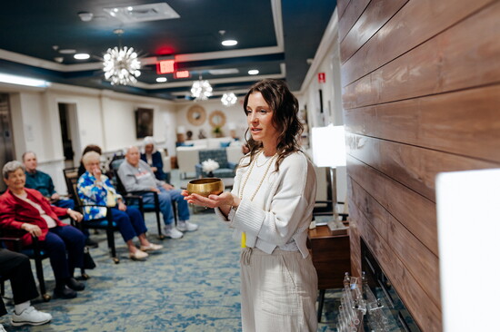 That realization led her to Bridgeway Senior Healthcare, where she now merges her love for wellness with community outreach. “Bridgeway and Avalon are family-owned/operated and mission-driven as a Continuum of Care which aligns with my mission as well,” Christina says. Through her work, Christina shares chair and mat yoga classes, breathwork, and sound therapy—or “guided instrument meditation,” as she calls it for her senior groups—to residents and the wider community. “I adapt the pace, but the essence is the same,” she says. “We focus on breath, intention, and gratitude, providing internal self-care for the whole person.”