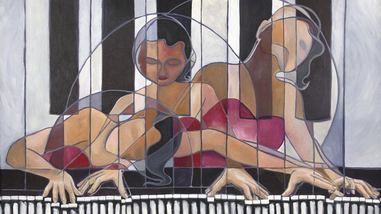 "The Piano Player" is one of Anika's many paintings that represent the colors and textures she experiences when she hears a certain type of music. To her, the music of Regina Spektor or Sarah McLachlan seems to flow from this painting, but she loves to hear what music others may see in her paintings.