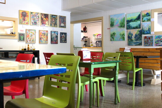 SweetBerries Eatery and Frozen Custard has been serving fresh sandwiches, salads, wraps, and hot dogs in the Gainesville area for 12 years. They take pride in supporting other local vendors. Their frozen custard ice cream is made with Florida dairy. Dunk a scrumptious local bakery made Brother Cookie into a steaming cup of locally roasted Opus coffee. Want a beer with your sandwich? Select from an array of canned and bottled beers that include our hometown craft brewery favorites. Dine at tables painted by local artists and enjoy their beautiful art covering walls and windows. Open 11am-8pm 7 days a week. Catering available.
